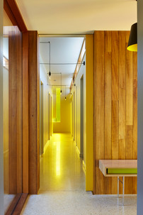 The childhood playfulness of the building, designed by Grieve Gillett Architects is further evoked in bold splashes of red, blue, green, orange, yellow that punctuate the living areas earning the building its nickname, Crayon House.